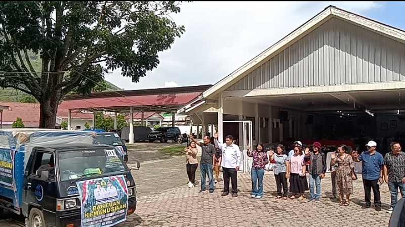 SAMOSIR.WAHANANEWS.CO -Pangururan, Dalam rangka turut prihatin akan musibah banjir dan longsor yang menimpa Sibolga dan Tapanuli tengah, Pemkab Samosir melalui Bupati Samosir Vandiko Gultom.Pemberangkatan bantuan dilaksanakan dari rumah dinas Bupati Samosir Jalan danau Toba, no 1 kecamatan Pangururan, Sabtu (06/12/2025)