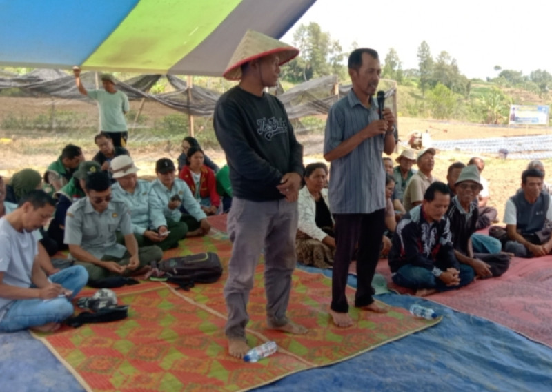 Ketua Kelompok Tani Santo Adrianus Peajolo, Hotber P. Turnip didampingi Ketua Kelompok Tani Lamtama, Feriadi Sitio Penerima bantuan bibit bawang putih menyampaikan apresiasi atas penanaman perdana bawang putih yang diberikan oleh Pemerintah pusat dan menyampaikan semoga apa yang ditanam hari ini dapat dipanen dengan hasil yang memuaskan kedepannya.