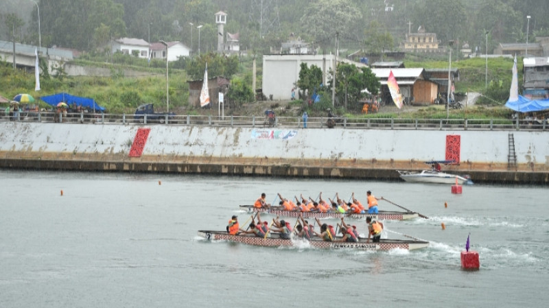 Sorak sorai penonton memecah suasana saat perahu-perahu tradisional melaju kencang di perairan Tano Ponggol. Antusiasme masyarakat dan wisatawan tampak tinggi menyaksikan pertandingan yang berlangsung sengit.