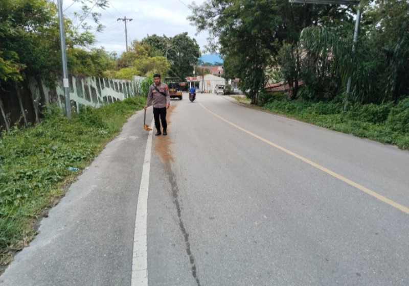 "Kita dapat laporan dari masyarakat bahwa ada solar yang tumpah dan berserakan di jalan hingga ada beberapa pengendara yang tergelincir akibat licin nya jalan tersebut,"ucap Kapolsek Simanindo.