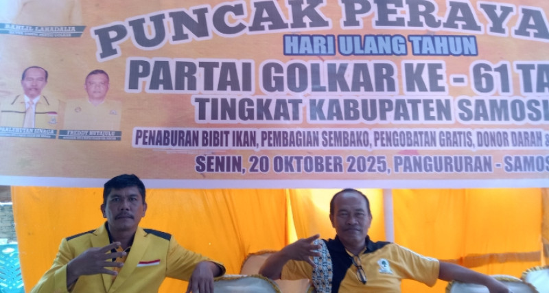 SAMOSIR.WAHANANEWS.CO -Pangururan, Dalam rangka Hari Ulang Tahun (HUT) Partai Golkar ke 61 Tahun yang di rayakan serentak di Indonesia.20 Oktober 2025, DPD II Golkar Kabupaten Samosir laksanakan kegiatan HUT Partai Golkar di Kantor DPD II Golkar Samosir di kecamatan Pangururan. Hal tersebut disampaikan Parluhutan Sinaga Sekretaris DPD II Golkar yang juga Anggota DPRD Samosir dari fraksi Golkar, Senin (20/10/2025)