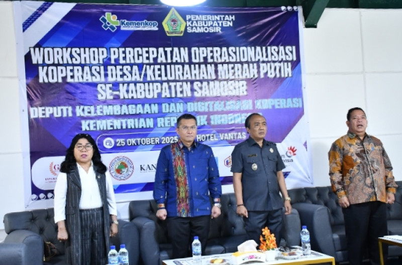 SAMOSIR.WAHANANEWS.CO - Sialaguan,, Guna percepatan berjalannya program Koperasi Merah Putih Walau dengan keterbatasan sumber daya, Kementerian Koperasi RI bersama Pemerintah Kabupaten Samosir Sabtu (25/10/2025) Melaksanakan Workshop Percepatan Operasionalisasi KDKMP Kabupaten Samosir, yang melibatkan berbagai mitra Swasta, seperti perusahaan teknologi/tech provider, pemasok /sembako/ritel, lembaga pembiayaan (Bank/KSP), Minggu (26/0/10/2025)