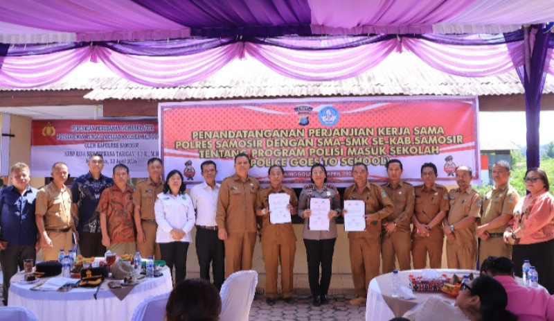 Di kesempatan tersebut juga dilaksanakan penandatanganan Perjanjian Kerja Sama antara Polres Samosir dan SMA/SMK se-Kabupaten Samosir dalam program pembinaan generasi muda bertajuk Police Goes To School. Kegiatan dilakukan di Mako Polsek Nainggolan, Selasa (14/04/2026)