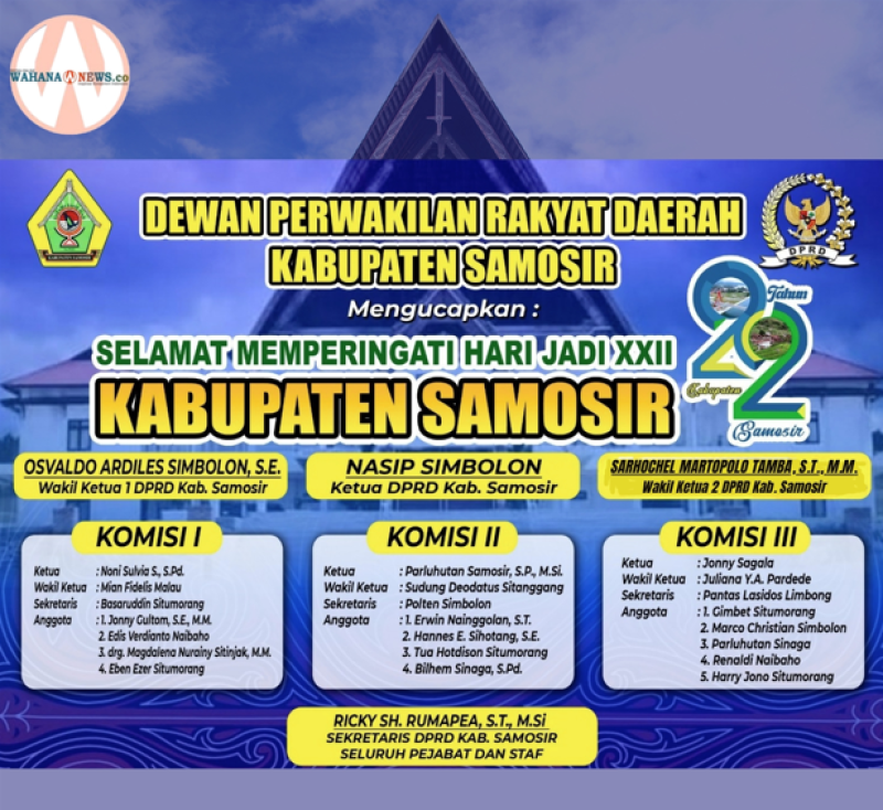SAMOSIR.WAHANANEWS.CO -Pangururan, Syukuran Hari jadi ke-22 Kabupaten Samosir yang dilaksanakan Jum'at (27/02/2026) berjalan sukses.Kegiatan perayaan mengusung tema “Samosir Rumah Kita” dan subtema “Hidup Selaras Alam, Tingkatkan Hidup Rukun Menuju Indonesia Emas 2045”. Perayaan syukur digelar di Segmen 5 Waterfront Pangururan, Kegiatan diawali dengan ibadah oikumenis yang dipimpin Pastor Ivo Sinaga. Sabtu (28/02/2026).
