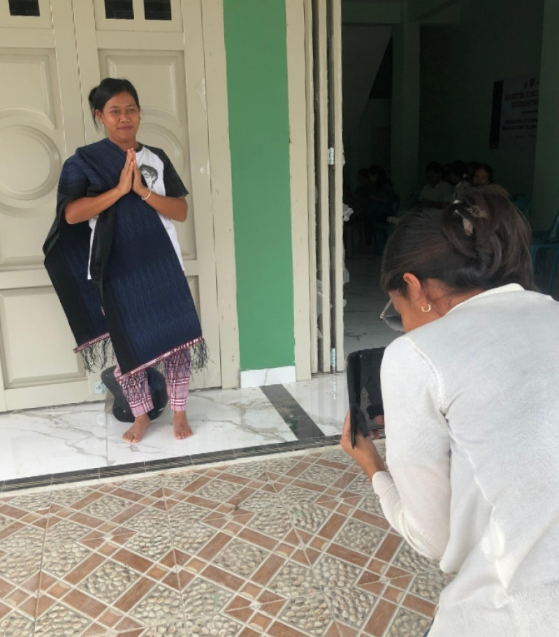Penenun mempraktekkan cara pengambilan photo dan digital Marketing
